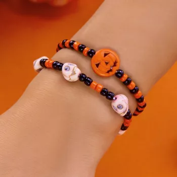 Halloween Skull Beaded Bracelet – Colorful Punk Skeleton Jewelry