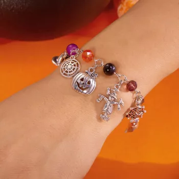 Halloween Charm Chain Bracelet with Spiders, Pumpkins & Ghosts