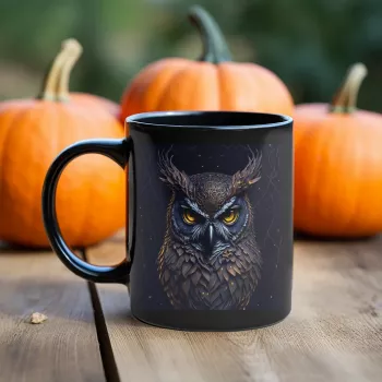 Angry Owl Coffee Mug for Husband – 11oz Black Ceramic Beer Cup